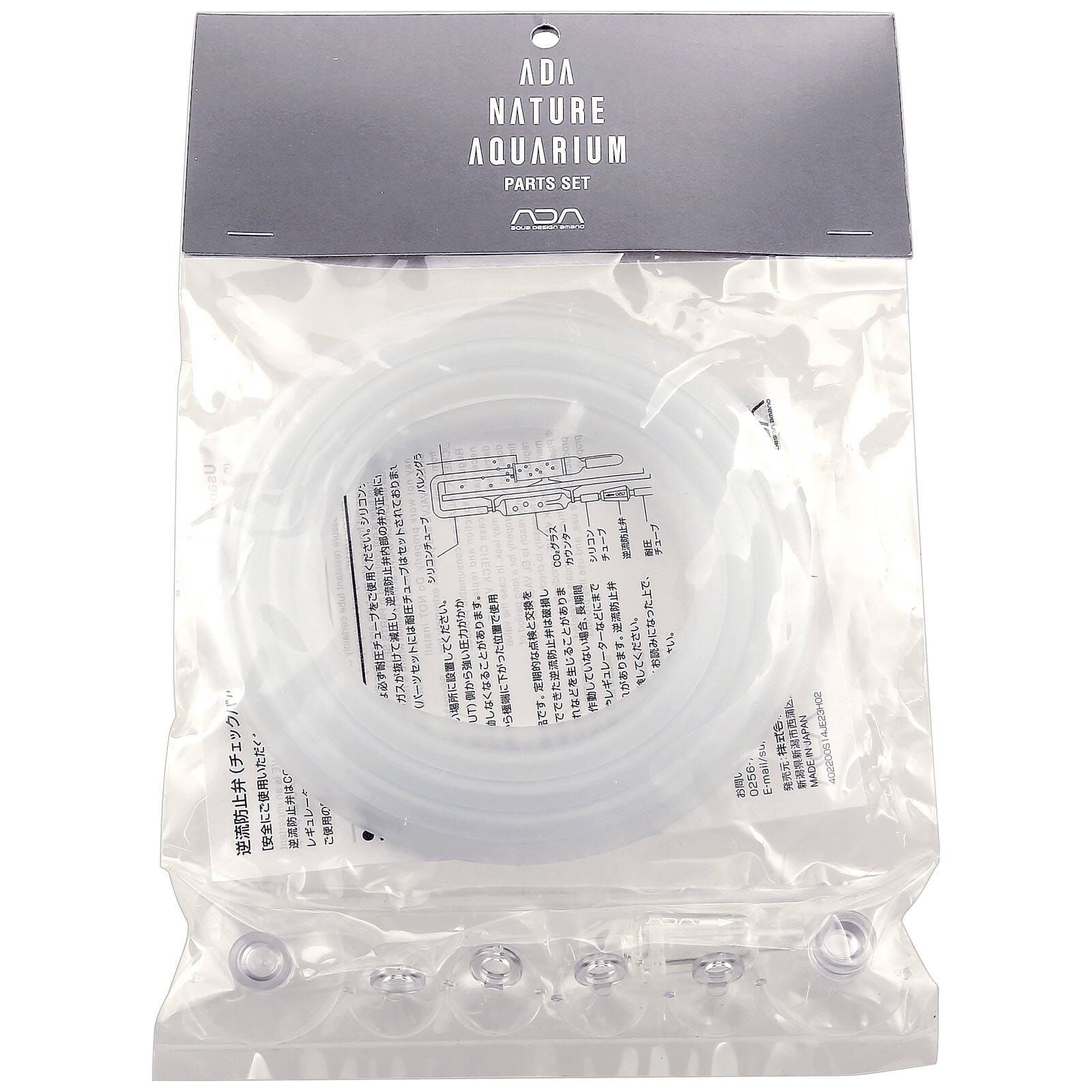 Clear Parts Set is the clear transparent type of Parts Set. The contents of the set is same as Gray parts Set that are necessary for connecting and installing glass-made equipment. It is recommended to replace Suction cups and Check valve approximately once a year as the suction capability of Suction cups decrease with time, and Check valve degrade with age and triggers counter flow to EL Valve and CO2Â regulator, causing the breakage.