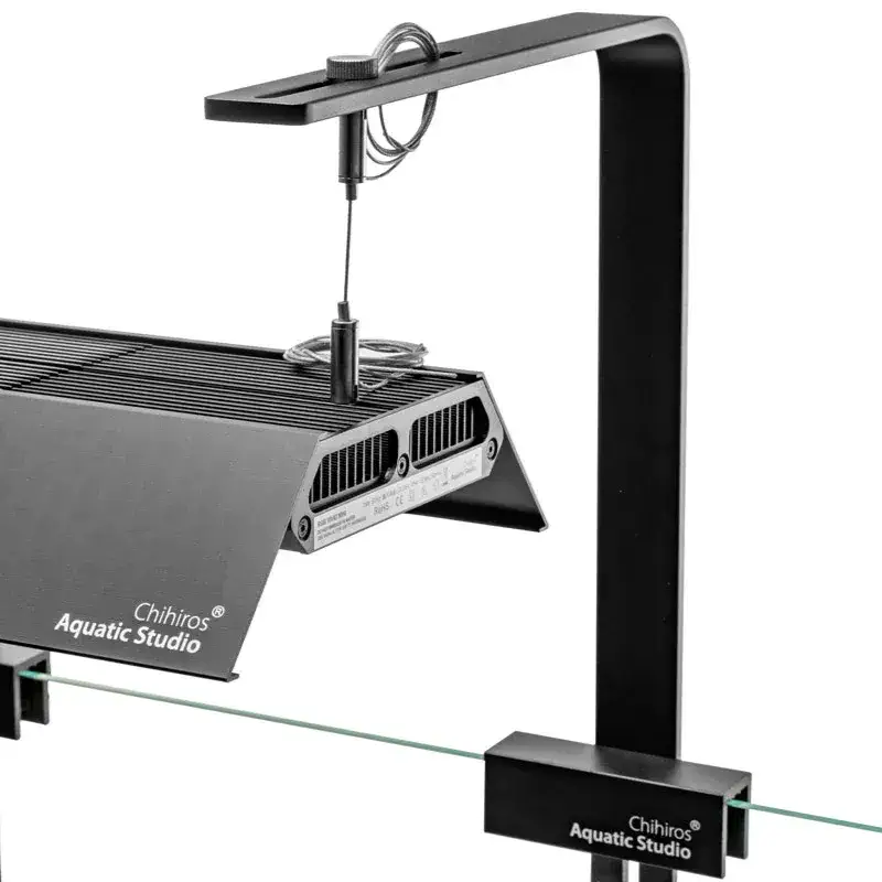 The Chihiros Small holder made of aluminum alloy enables the stable suspension of LED lights. It is suitable for Chihiros RGB VIVID, WRGB and the Chihiros A and B series. Two stands ensure secure attachment to the edge of the aquarium.