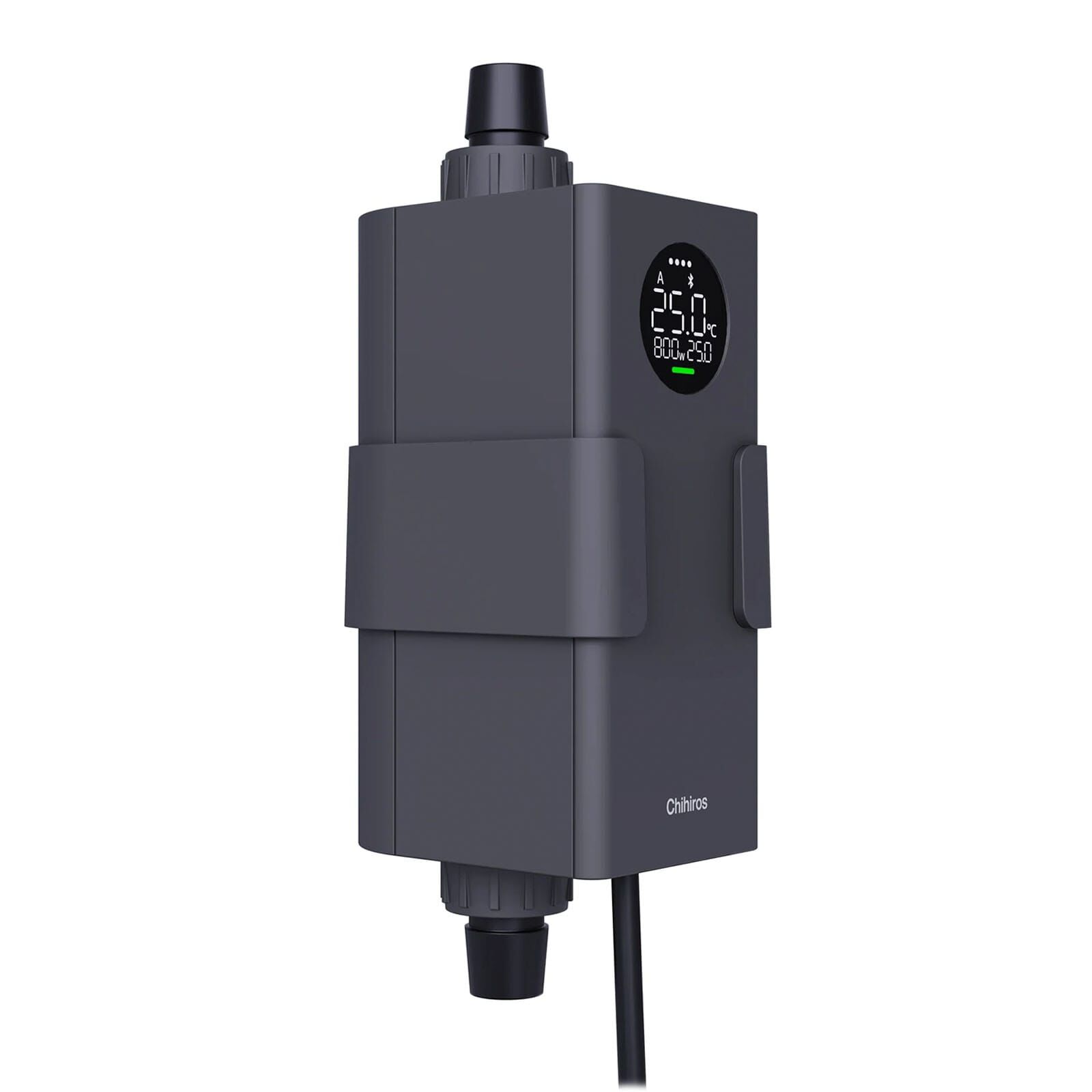 The Chihiros Heater Pro is an external, adjustable freshwater aquarium heater with app control that enables precise and safe temperature control. Thanks to the flexible power range from 10 to 1000 watts, the device is suitable for aquariums measuring 30 to 180 cm. It is controlled via the My Chihiros app, which allows the temperature to be precisely adjusted between 10°C and 35°C.
