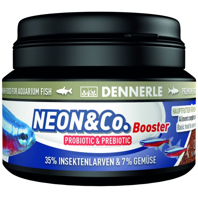 Staple food for neon tetras and other small ornamental fish such as tetras, barbs, danios or guppies. The fine granules consist of many high-quality ingredients, such as insects (27%) and krill, as well as garlic (1%) and spinach (3%), thus ensuring a balanced diet. Rich in astaxanthin, the fine morsels of food promote the full expression of species-specific coloration.