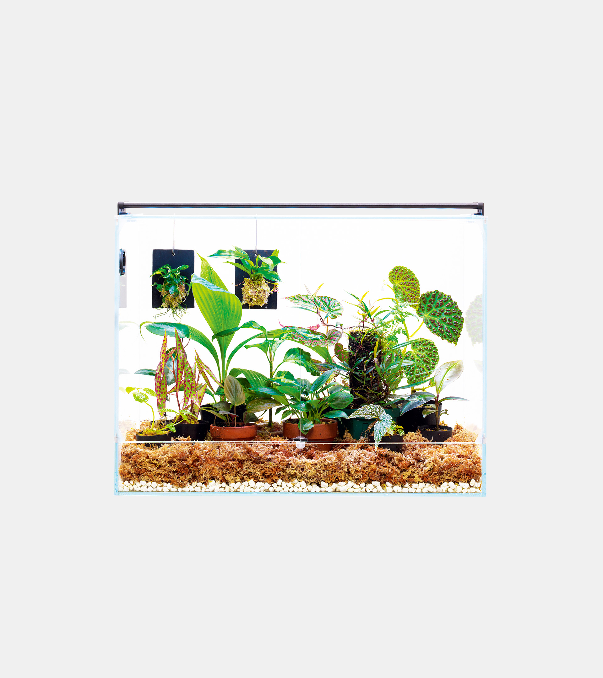 DOOA’s Neo Glass Paluda is a high-quality paludarium for planting rainforest plants in a minimal way. The windshields of the Neo Glass Paluda can be opened wide. The 30 cm version has a single swinging door made of glass, the larger 60 cm version is opened with two glass doors. This allows for easy planting and effortless care of tropical flora.