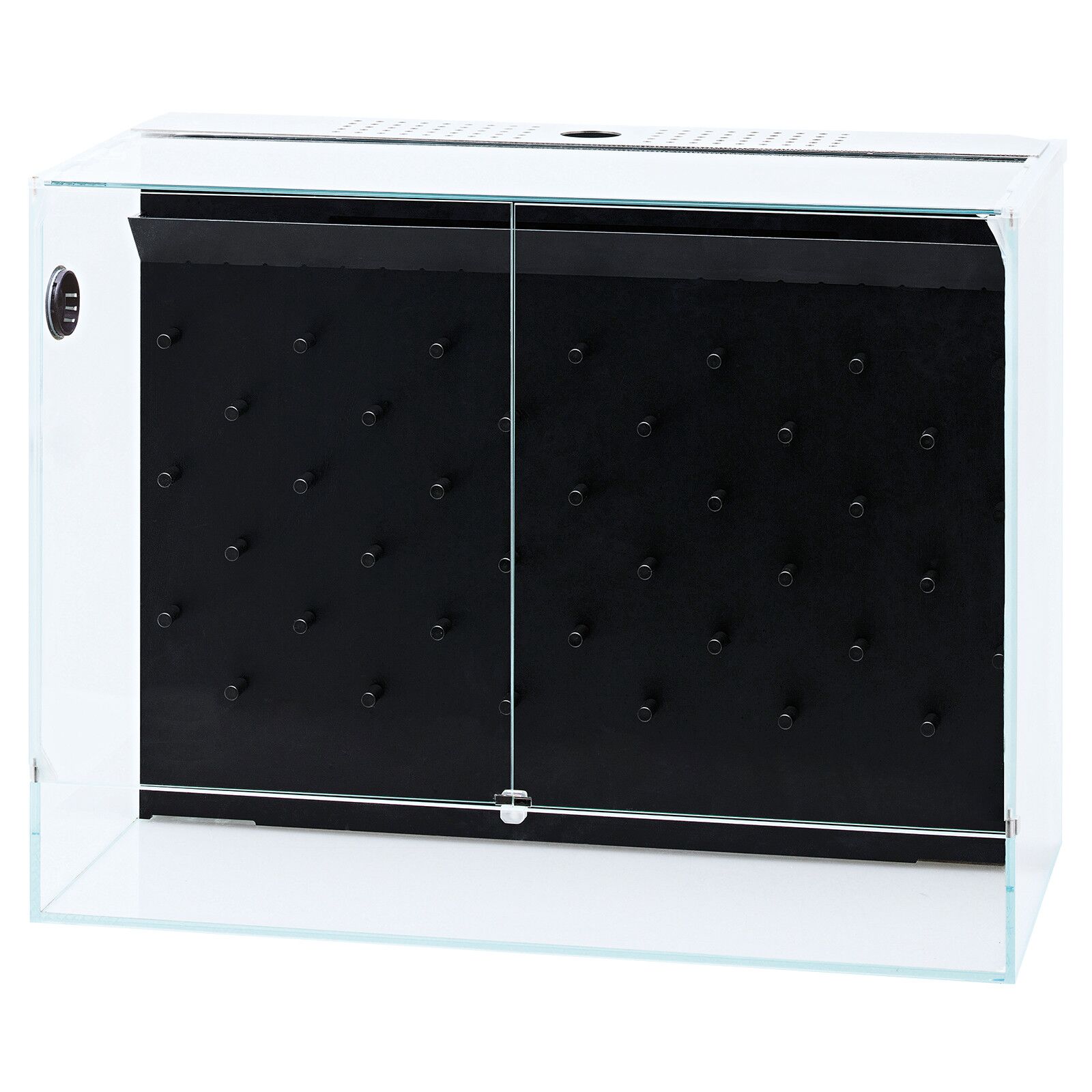 The DOOA System Paluda is a technically fully equipped Paludarium set with integrated pumping and nebulization technology. It enables detailed reproduction of tropical habitats under controlled conditions. The elegant glass body has wide-open front doors that allow easy planting and care. An upper sliding disc complements the access. The heart of it is the removable Mistflow box, in which a nebulizer ensures the finest water mist. An integrated pump keeps the water level constant. Using a Circulation Fan 40, airflow in the paludarium can be controlled, crucial for the even distribution of moisture and healthy development of epiphytic plant species such as orchids. To design the back wall, Wabi-Kusa mats including mosses and sessile plants can be attached to mesh pins in the Mistflow box. The moisture collected in the soil is regulated by an absorbent sponge. Ideal for keeping tropical plants in a home-friendly environment.