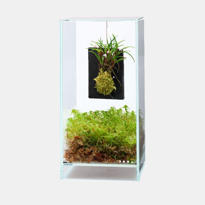 DOOA’s Terra Plate is an innovative means of placing planted elements in a DOOA Neo Glass Air or other Wabikusa vessel. The Terra Plate, like the Terra Base also available from DOOA, has a roughened ceramic texture, which means that decorative sitter plants adhere easily. Small orchids, anubias and bucephalandras find growing conditions similar to those on tree trunks in the rainforest, as the Terra Plate optimally controls moisture thanks to its excellent absorption properties. The back is slightly concave to guarantee air permeability when the Terra Plate rests on the ground. To drape the ceramic plate hanging from the aquarium, there is the additional Terra Plate Hook that can be purchased.