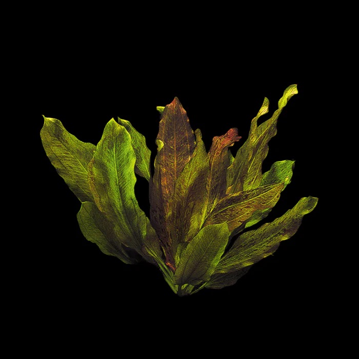 Bring dramatic color and bold structure to your aquarium with Echinodorus ‘Ozelot Red’, a striking sword plant prized for its deep red to bronze foliage and unique spotted patterns. Its large, broad leaves make it an impressive centerpiece, perfect for creating contrast against green plants in medium to large aquariums.