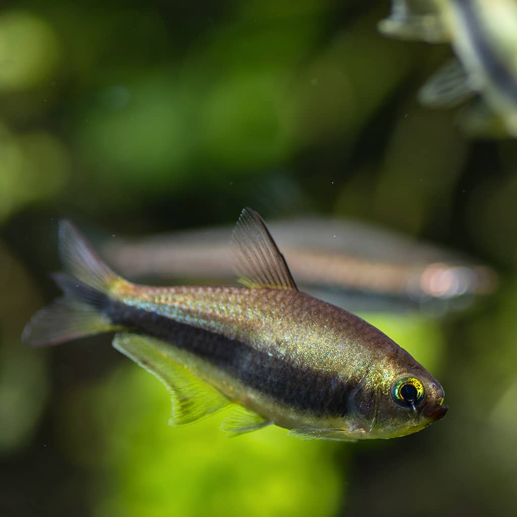The Emperor Tetra is a striking freshwater species known for its graceful swimming, shimmering purple-blue hues, and bold horizontal stripe that runs the length of its body. Native to the rivers of Colombia, this peaceful tetra adds a touch of regal beauty to any planted or community aquarium.