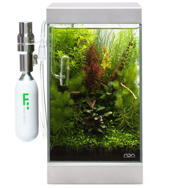The set also includes an ADA CO2 System 74-DA for the optimal supply of carbon dioxide to aquatic plants, which is essential for their healthy growth. The CO2-System 74-DA is a CO2-System operating at a pressure of 3 bar, providing an optimum supply of aquatic plants. The scope of delivery includes a CO2-Forest Bottle as well as a special hook that allows the system to be attached to Cube Garden.