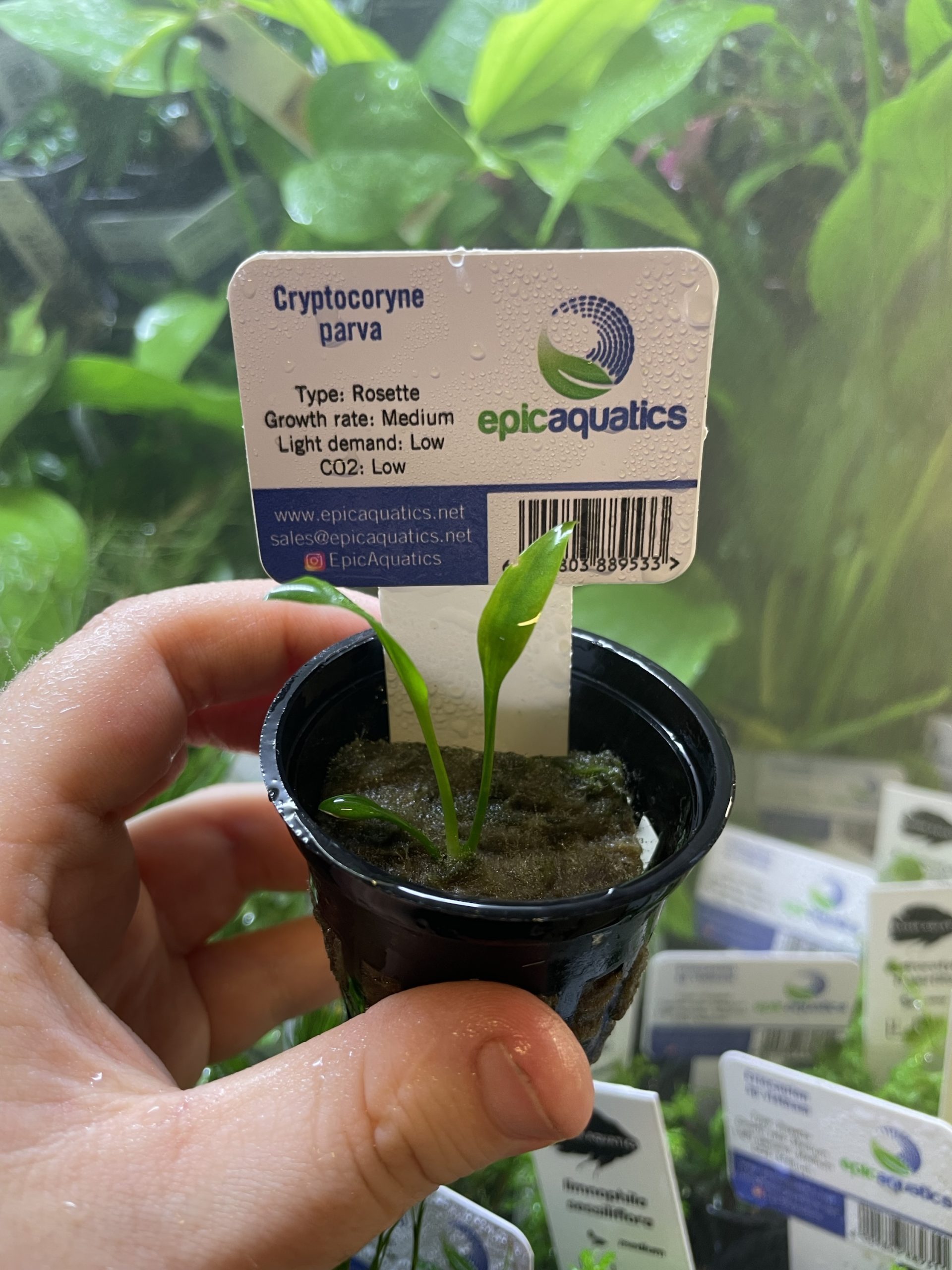 Potted, healthy, high-quality Cryptocoryne Parva from Epic Aquatics. Ready to rinse, separate, and plant directly into your aquarium substrate.