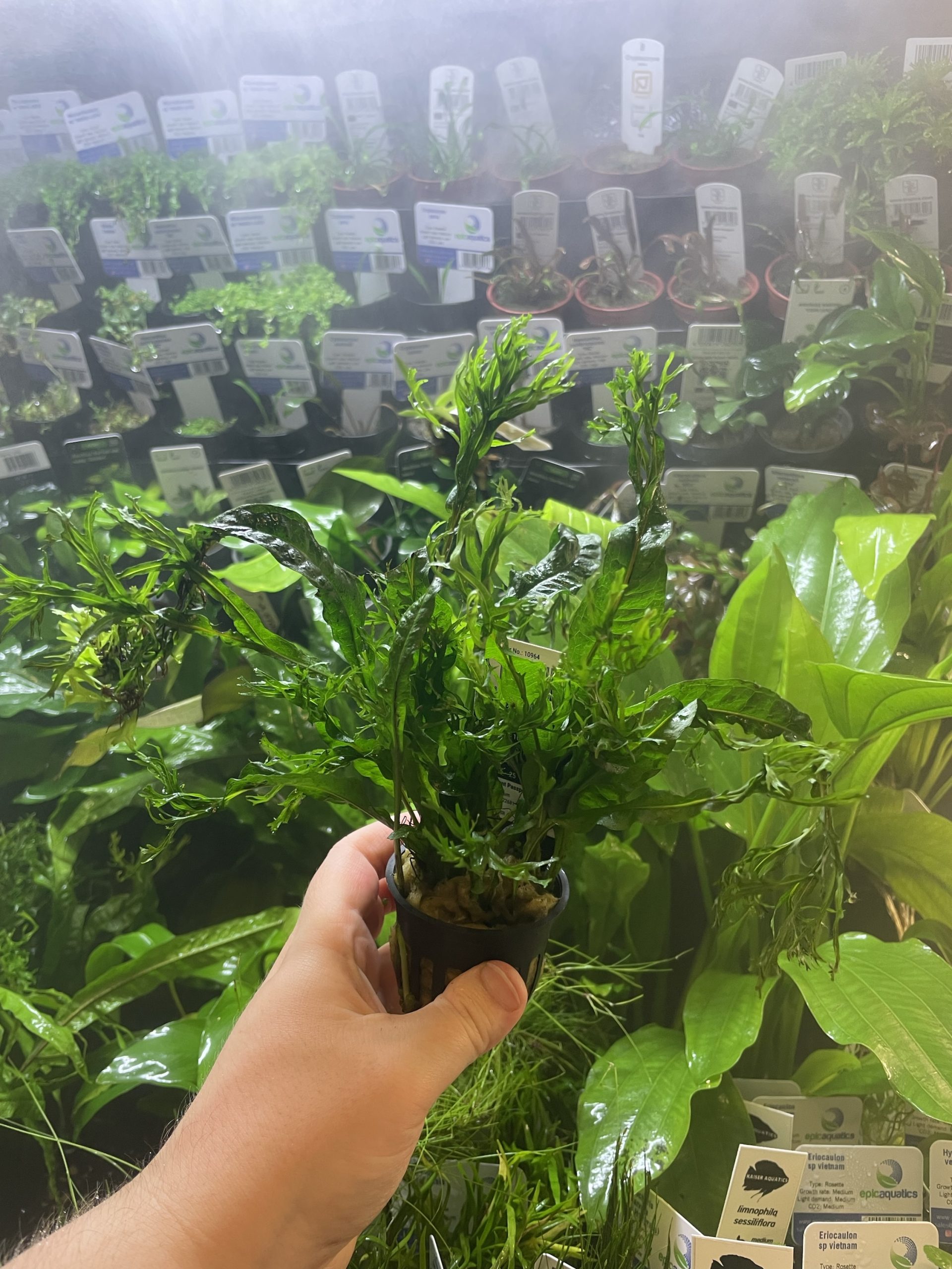 Microsorum Pteropus AKA Java fern is a commonly used aquatic plant in the aquarium hobby due to its easy care. Java Fern Trident features long and thin fork-like foliage and is similar to other popular species of Java Fern such as Windelov and Needle Leaf. It can grow great in low light conditions and is forgiving in a wide range of aquarium water parameters.