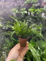 Bolbitis Heudelotii is a beautiful aquatic plant that features sheer dark green foliage that exhibits a flowing growth pattern. Commonly known as African Water Fern, Bolbitis Heudelotii is increasing in popularity within the planted tank hobby but remains relatively uncommon and one of the more difficult aquatic plants to find. Bolbitis Heudelotii is generally undemanding but does prefer an aquarium tank with a higher flow as this aquatic plant’s natural habitat provides a quick-moving current. Similar to its popular relative, Bolbitis Difformis Mini, Bolbitis Heudelotii should be attached to a hard surface such as aquarium driftwood or stone. Burying the rhizome will result in rot and the aquatic plant will not survive. Optimal conditions include CO2 injection, strong, flow, and slightly acidic water properties. As one of our personal favorites, Bolbitis Heudelotii provides a delicate and elegant appearance to a planted aquarium tank. We recommend using this aquatic plant in larger sized aquarium tanks, but it can also be used in a nano-sized aquarium tank as well given its slower growth pace. This aquatic plant would look beautiful paired with a darker aquarium driftwood along with other darker hued aquatic plants. If successful, Bolbitis Heudelotii propagates through the division of its rhizome. Gently separate and reattach.