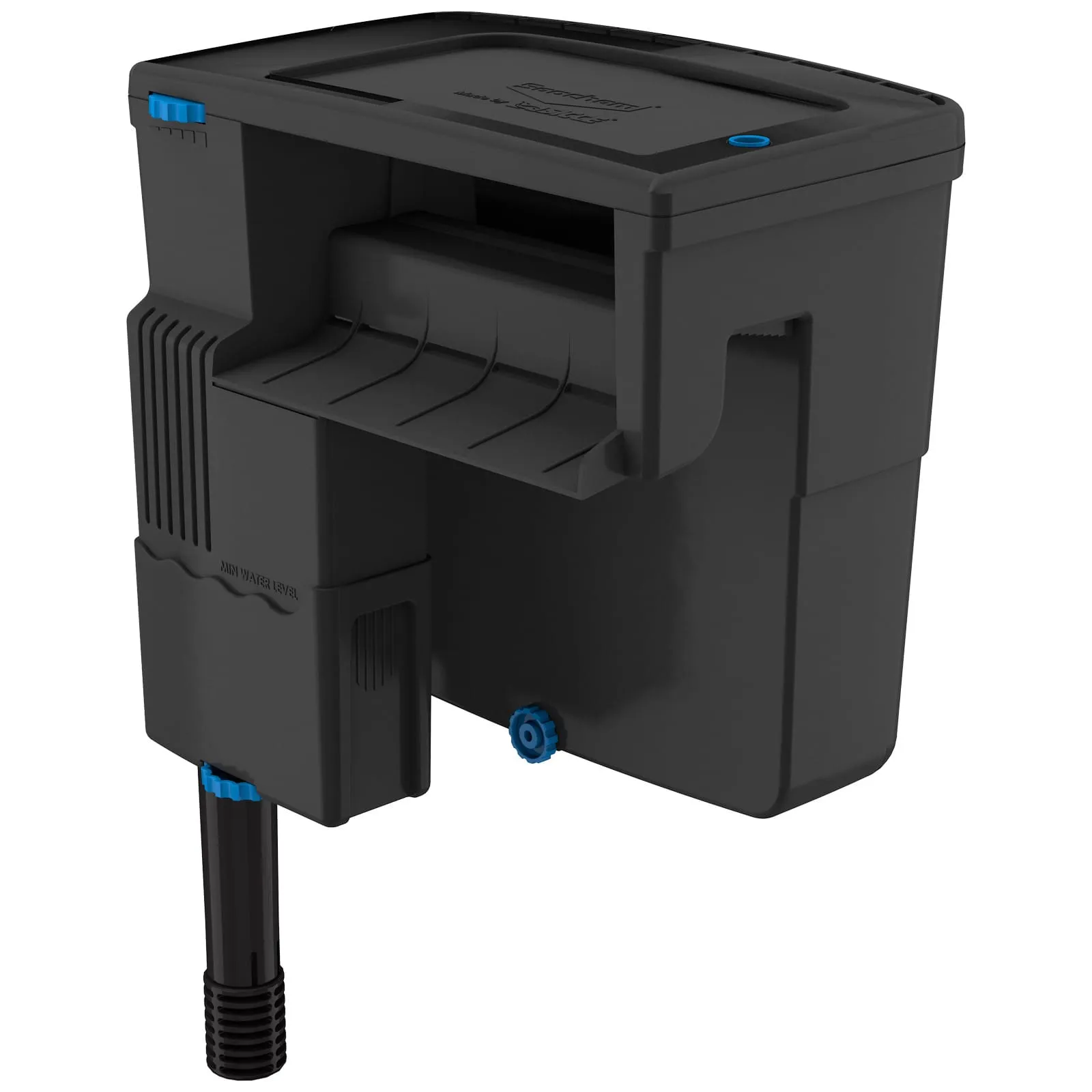 Both inflow and flow can be regulated manually. The Seachem Tidal filter has a self-cleaning function and additionally has a signal pin that becomes visible when the filter needs additional cleaning.